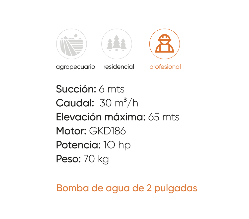 Adquiere tu motobomba GKD50i, cuenta con 2" pulgadas de altura y sellado mecánico cerámico de alta calidad. Diseño de antivibración, además de aleación de aluminio ligera y resistente.