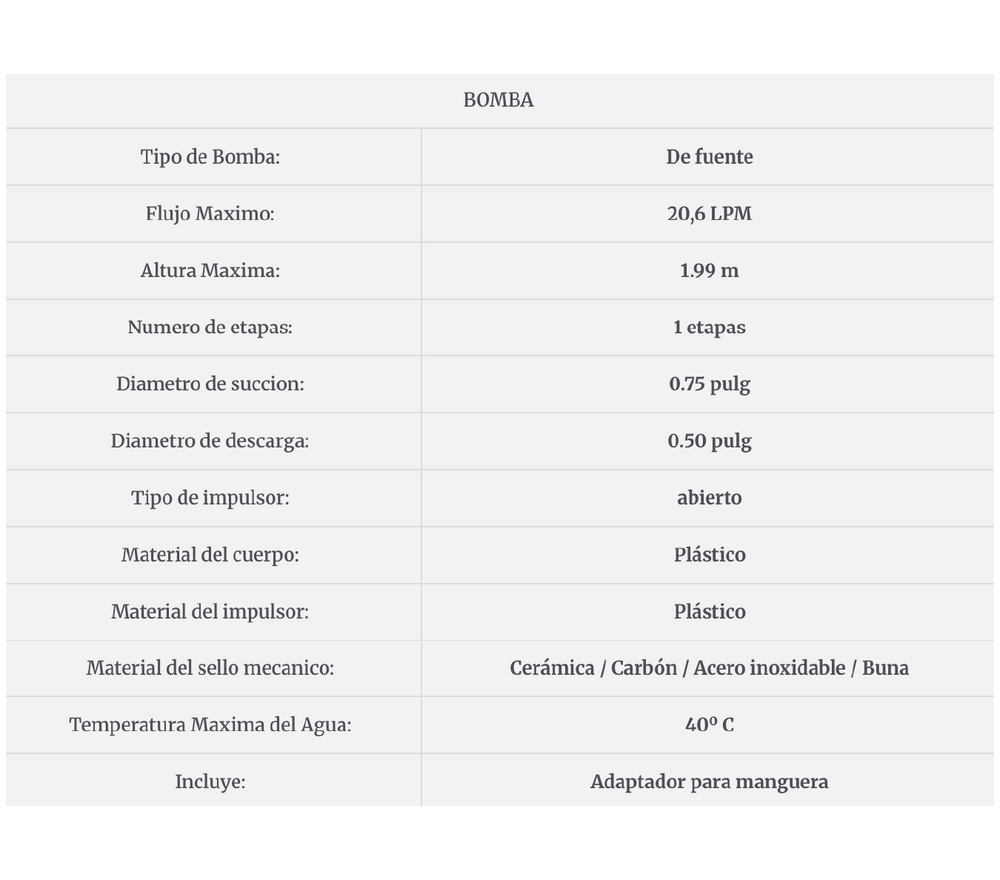 Bomba sumergible para fuentes de ornato y estanques de 30 W. Agrotécnico.