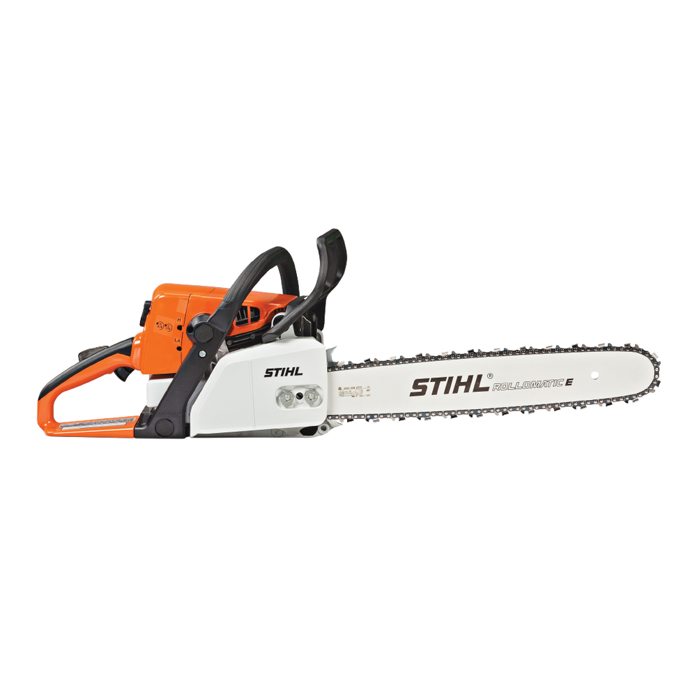 Motosierra versátil, compacta y de gran potencia. Ideal para cortar leña, podas gruesas o tareas generales en finca. Motor eficiente, freno de cadena QuickStop®, sistema antivibración y bajo peso para maniobrabilidad superior.